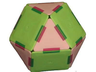 3角形8枚と4角形6枚の立方8面体という多面体が出来ます。